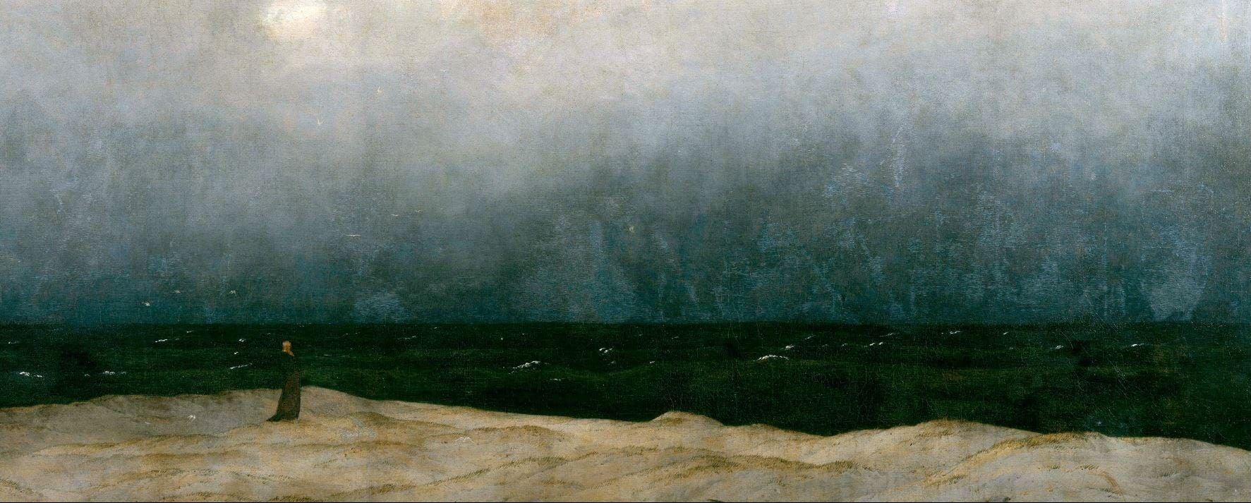תמנוה ראשית: פרט מתוך היצירה "הנזיר שעל שפת הים", קספר דויד פרידריך, 1808-1810, באדיבות ויקימדיה