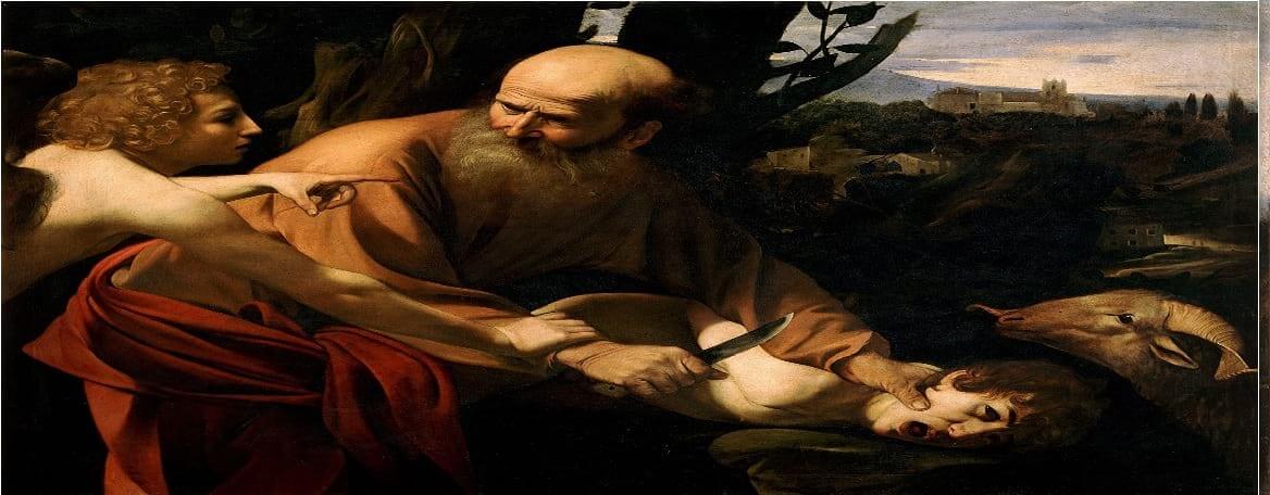 אברהם, מייסד הקהילה המיועד, משתף פעולה עם התכנית האלוהית. היש לו ברירה? אולם הוא אינו נתין פסיבי ושפל רוח. כדי להבטיח את שלומה ואת שגשוגה של משפחתו הוא זקוק לאלוהים, אבל מבין כי ניצב מולו עריץ הפכפך בעל דחפים רצחניים. הוא מאמץ אפוא אסטרטגיה ערמומית ומתמרן בין ציות ספקני לקריאת תיגר מאופקת. הוא מעז להציק לפטרונו בשאלות, להתווכח עמו בזהירות ואף להגיב לדבריו בצחוק ספונטני. כך הוא נוהג, למשל, כאשר אלוהים מבטיח לברך את שרי, רעייתו בת התשעים, בבן. על פי הפרשנות שמציע בנימיני, צחוקו של אברהם אינו ביטוי של שמחה או לגלוג, "אלא יותר תימהון או אירוניה עצמית במובן של כן, כן, בטח, ממש כך… כמו שנהוג לומר בעברית העכשווית, וזוהי, למעשה, משמעות ההבדל הקטן בין הדברים הנאמרים בלבו של אברהם לבין מה שהוא אומר בפיו לאלוהים".