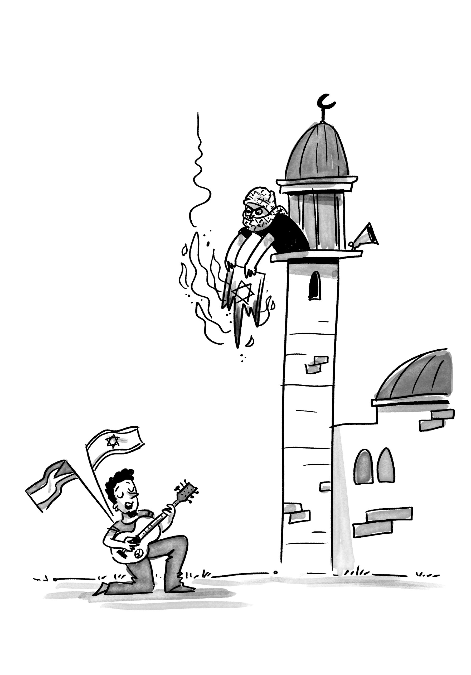 במילים אחרות, התקשורת הישראלית ממעיטה דרך קבע בכוונת הרעות של האויב, ומנסה בכל כוחה לתחזק את הנרטיב שלפיו הוא מבקש לעצמו "חיים טובים" או לכל היותר ריבונות משלו על שטח מצומצם. נוסף על כך היא מתאפיינת ביחס סלחני – ואף רומנטי – לערביי ישראל (ובכלל, מעריצה את הערביות ה'אותנטית', ה'בלדית', ומפגינה קרירות כלפי ערבים שאימצו עמדות ציוניות), ובמקביל מעצימה באופן בלתי פרופורציונלי כל פעולה אלימה של יהודים כלפי ערבים – מתוך איזה רצון כמעט מפורש להצביע על סימטריה, כך שניתן יהיה לגנות את "הקיצוניים משני הצדדים" (מושג שהפך לפופולרי בימי הסכמי אוסלו, כפי שתיאר יובל בלומברג במאמרו כאן בגיליון הקודם) – גם כאשר הבסיס להשוואה מופרך לחלוטין. אפילו בימים אלה, כאשר האויב נגלה כהתגלמות השטן עלי אדמות, שידיו מגואלות בדם ובסדיזם, יש מי שבוחרים להעמיד מולם את המאבקים על שטחי מרעה ואדמות מדינה, ולהעניק להם את הכינוי "אלימות מתנחלים" (אף שחלקם לפחות הם מעשה ידי צה"ל); בכך קיבל הממשל האמריקני את ההזדמנות לאזן במשהו את תמיכתו בלחימה הישראלית בעזה ולהראות שהוא פועל נגד "שני הצדדים".